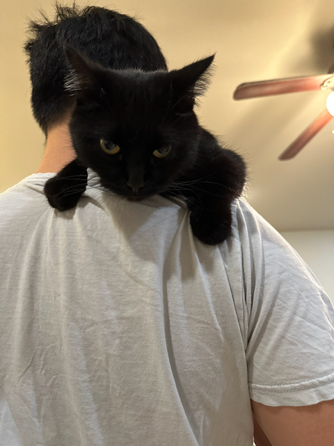 These guys are my brother’s cats. He adopted Po when he was studying his Master in Russia. Then he brought Po back to Vietnam with him. And then he brought Po to the U.S. once he immigrated here. The cat is a wise traveler! Fatty is Po’s son. Aside from an impressive travel record, Po is perhaps the classic stereotype of a black house cat. The things you have seen on Tiktok, she had done it. Catching birds and small rabbits and leaving carcasses to teach the soft humanoids how to hunt: check. Skippity papping the children when they are giving too much petting: check. Terrorizing neighborhood dogs: check. One time, I was calling my brother as he were taking his kids to the neighborhood playground. I could hear the children (other people’s children!) calling out to greet Po. She was casually strolling around watching out for her neighborhood.