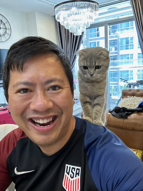 My students are probably already familiar with Snow, as I picked this picture of her peeking over my shoulder as my homepage and Discord avatars. I remembered that day, I visited the kids at their mother’s home before heading to the airport to go back to the U.S. We had lunch, and Snow, without any hesitation, promptly jumped on my chair, then stood on my shoulder to see what we were eating.