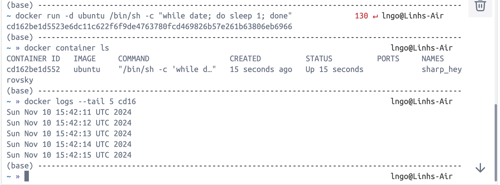 docker logs --tail 5 cd16
