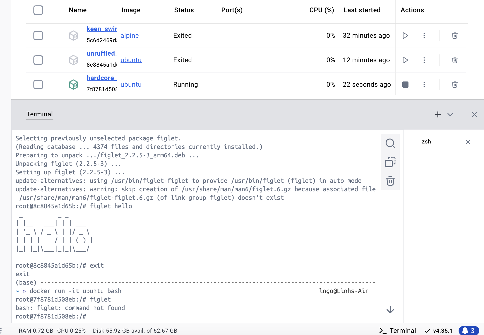 bash: figlet: command not found figlet program yet.figlet inside the container (# prompt)