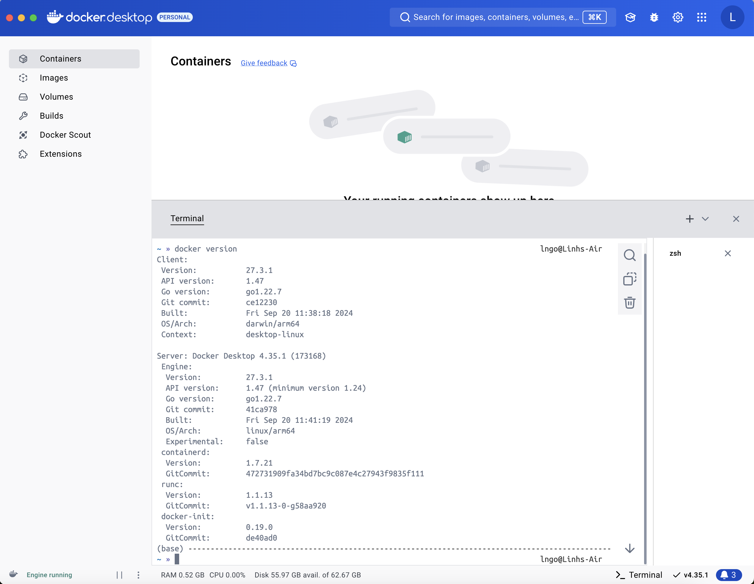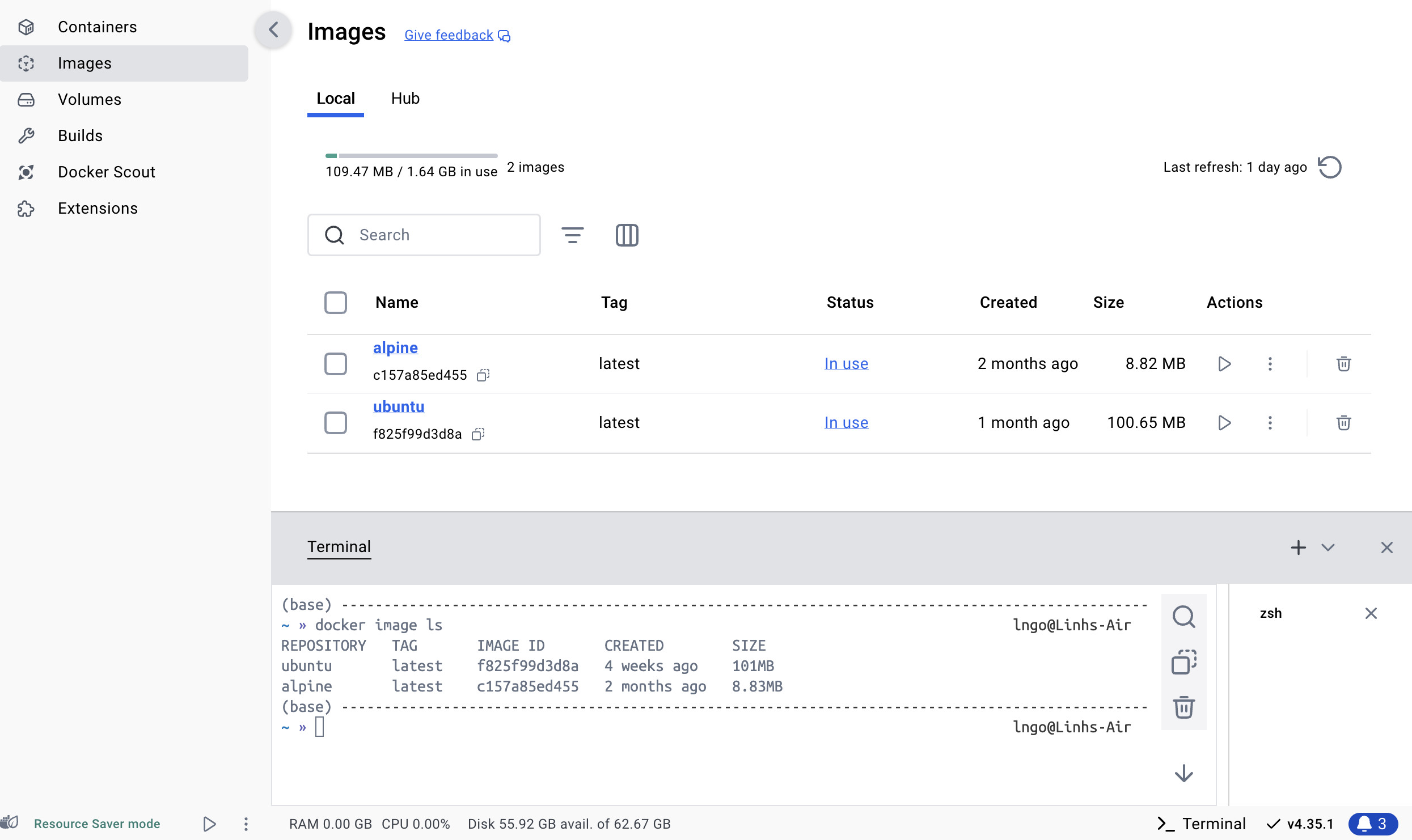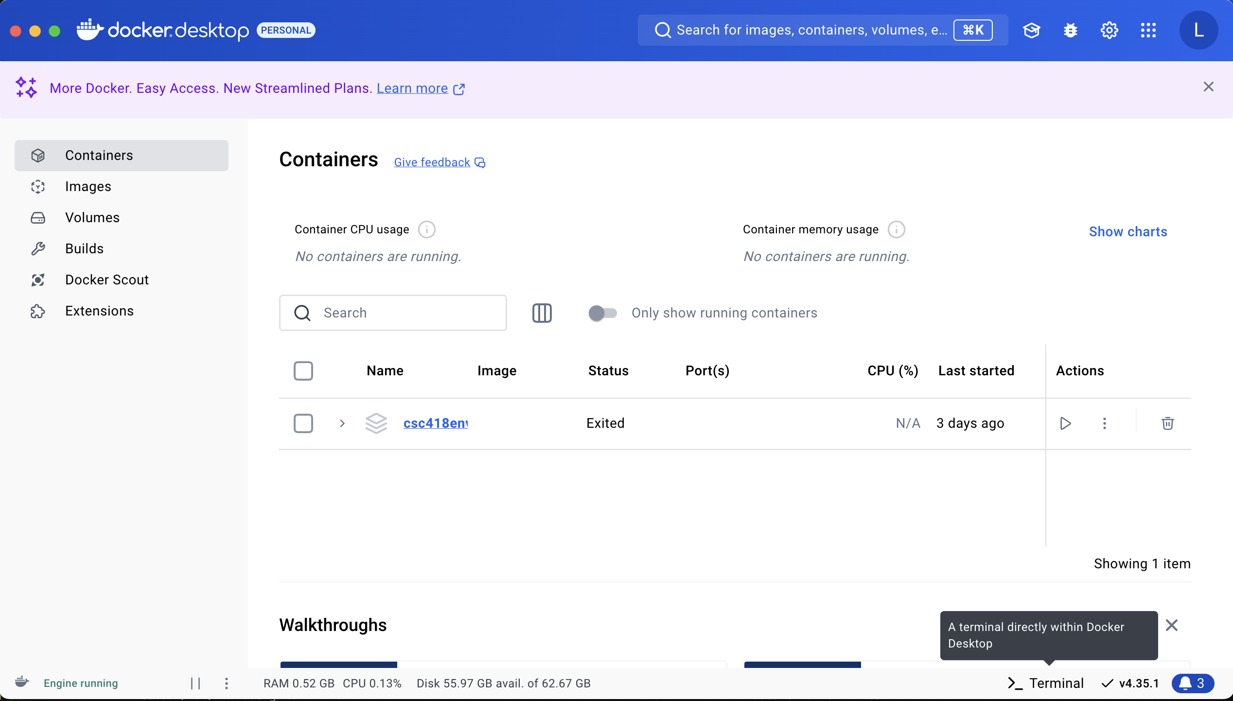 If you had previously installed Docker Desktop on your system, you need to make sure that what you have installed is up to date. The latest Docker Desktop and the accompanying Docker Engine contain many useful tools to help administrating your images and containers.
