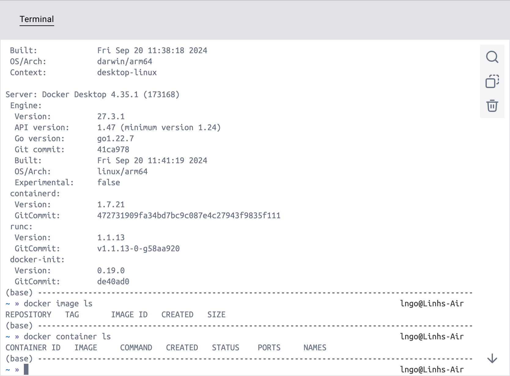 This material is written on: - Docker Desktop version 4.35.1 (173168) - Docker Engine: 27.3.1 - Docker Compose: v2.29.7-desktop.1