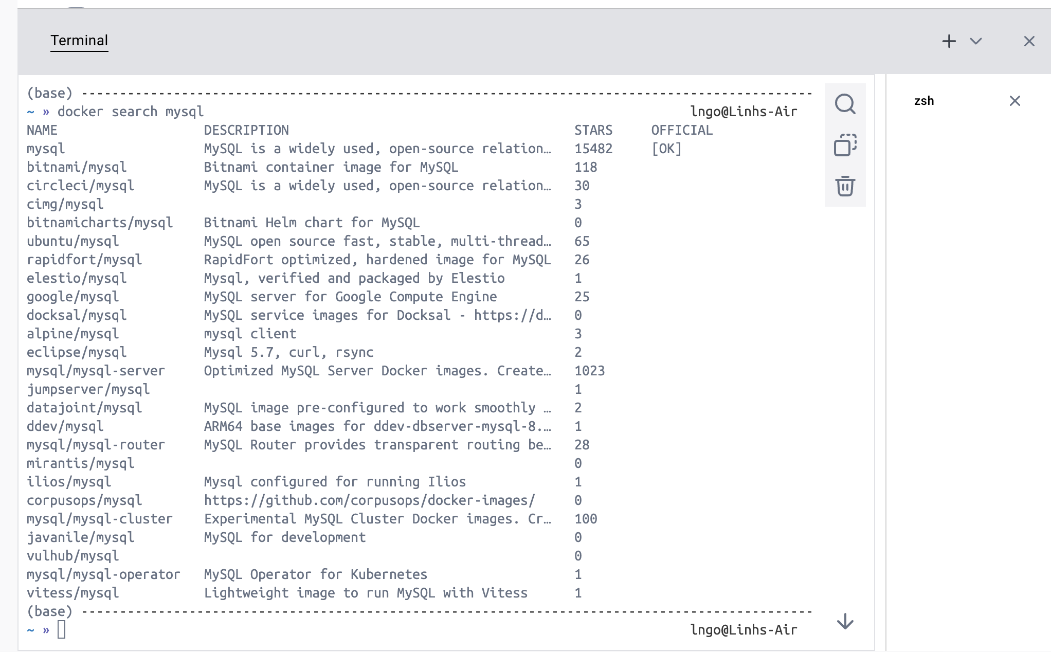 docker search mysql