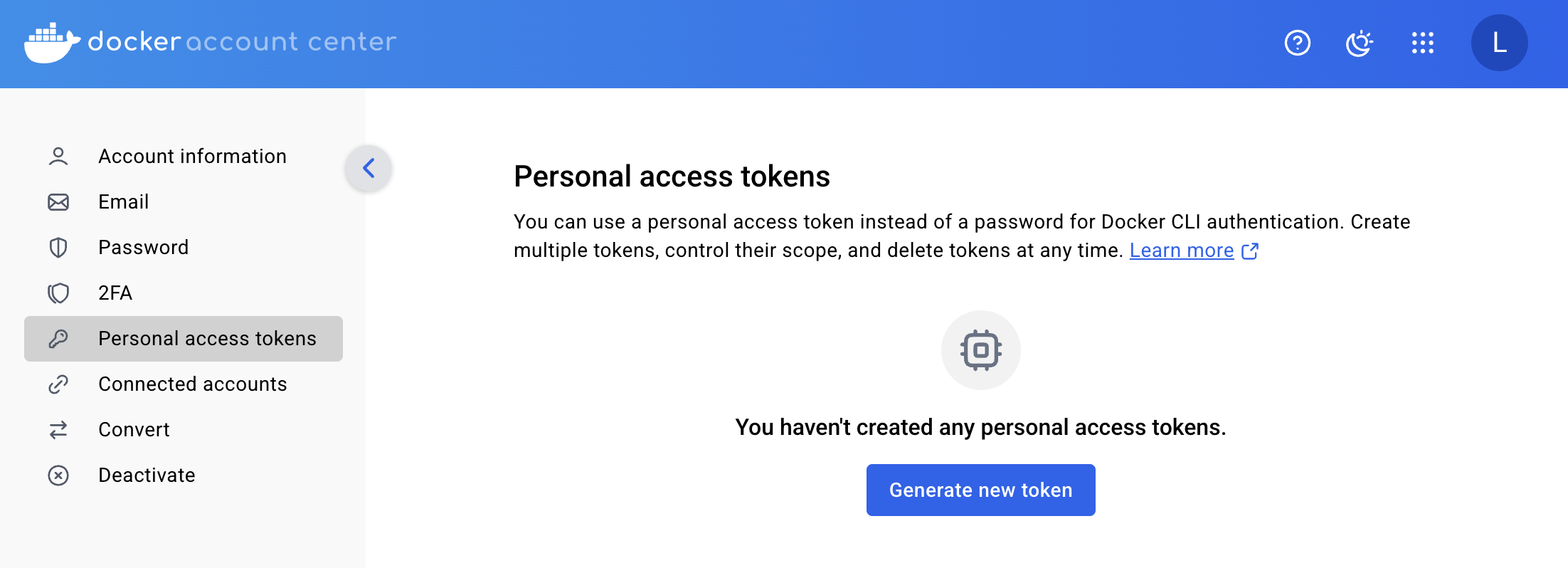Account Settings Personal access tokens