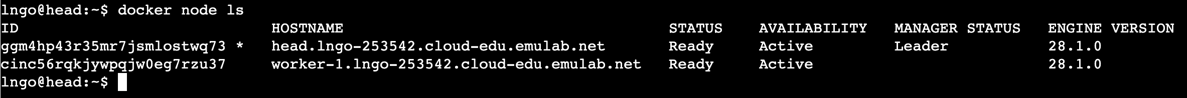 docker-swarm from your Docker branch.profile.py in your docker-swarm branch with the content from this profile.py.Node type: XenVM or RawPC: XenVMNumber of nodes: 2Number of cores in each node: 4MB of RAM in each node: 4096docker swarm: enable Swarm mode, join Swarm, adjust Swarm’s parametersdocker node: view nodes, promote/demote managers, manage nodesdocker service: create and manage services.