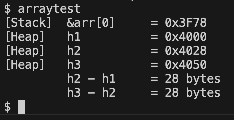 <span class="kt">int</span> <span class="o">*</span><span class="n">h3</span> <span class="o">=</span> <span class="p">(</span><span class="kt">int</span> <span class="o">*</span><span class="p">)</span><span class="n">sbrk</span><span class="p">(</span><span class="mi">10</span> <span class="o">*</span> <span class="k">sizeof</span><span class="p">(</span><span class="kt">int</span><span class="p">));</span>