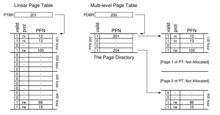Space versus Time: To reduce space, increased access translation steps are needed: one for the page directory and one for the PTE itself.