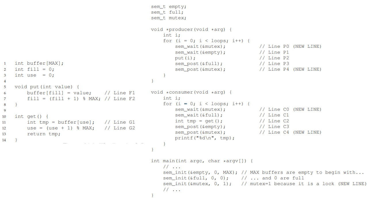 sem_init (&m, 0, X); // initilize semaphore to X. What should X be?