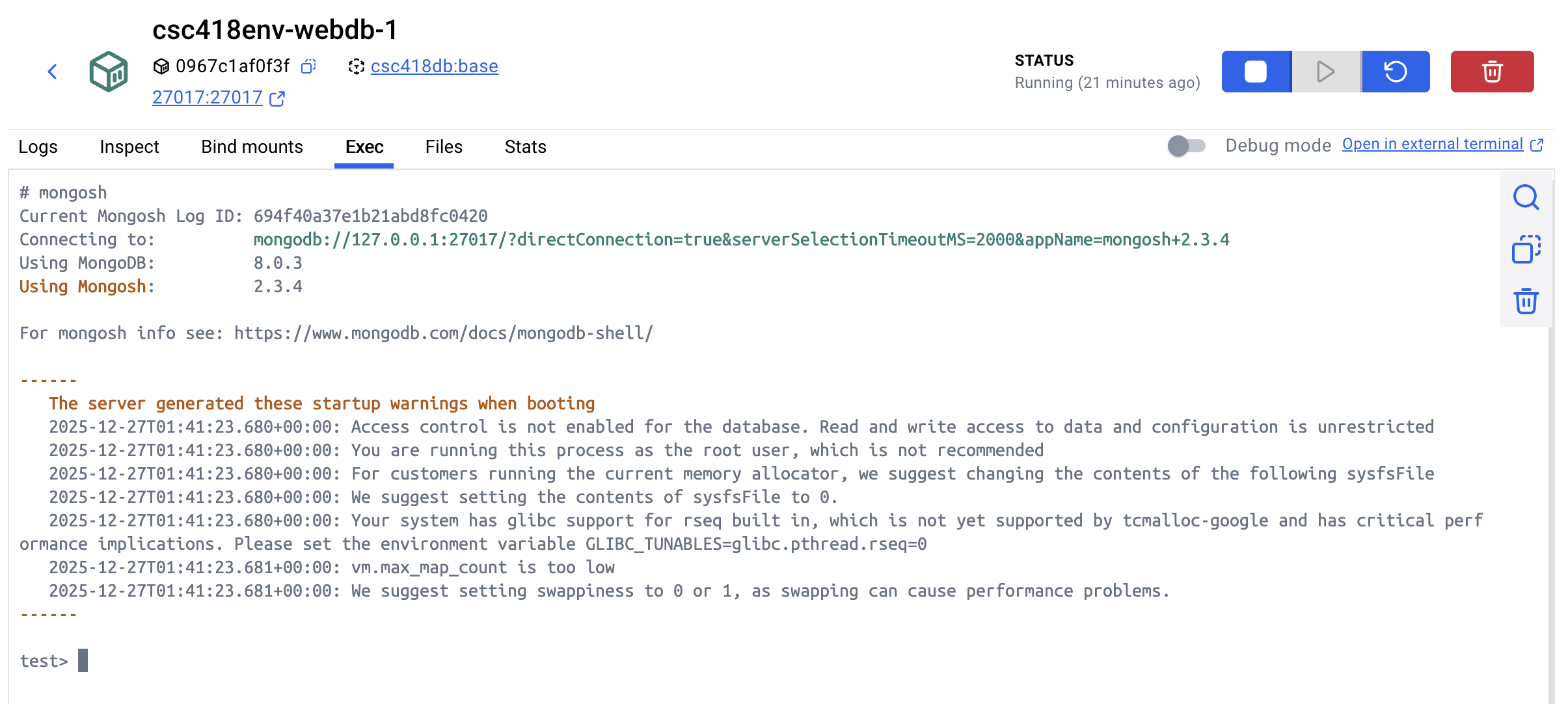 mongosh from the terminal.