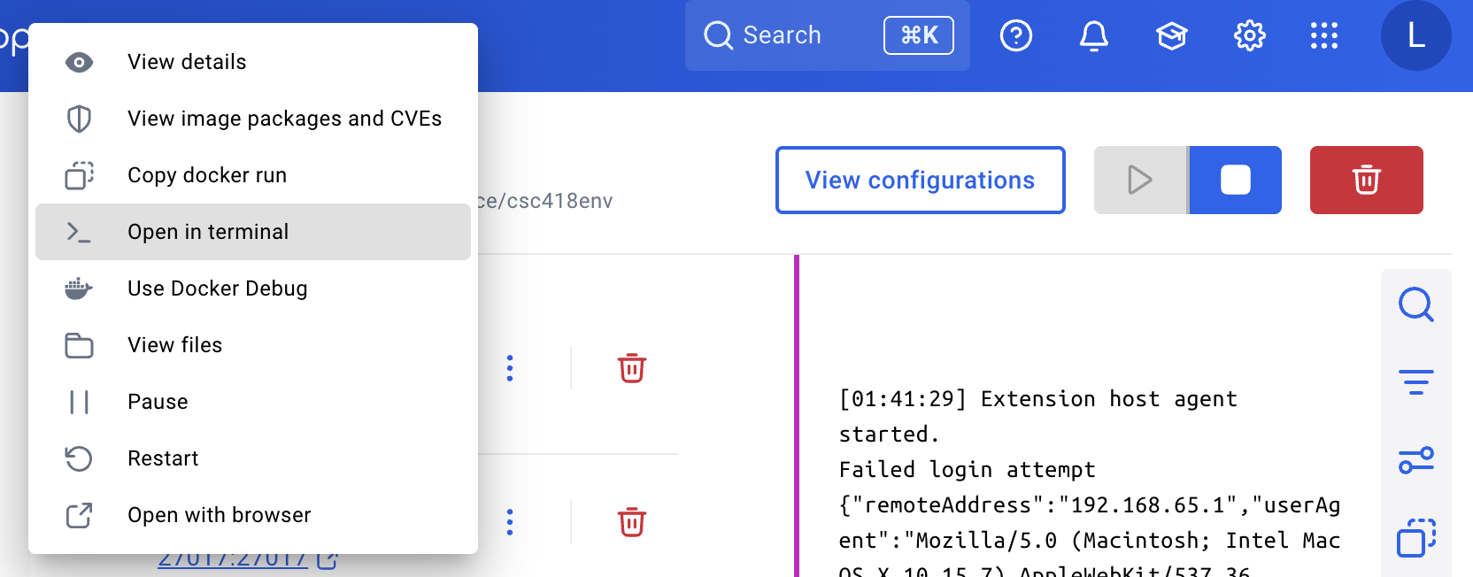webdb and select Open in terminal: