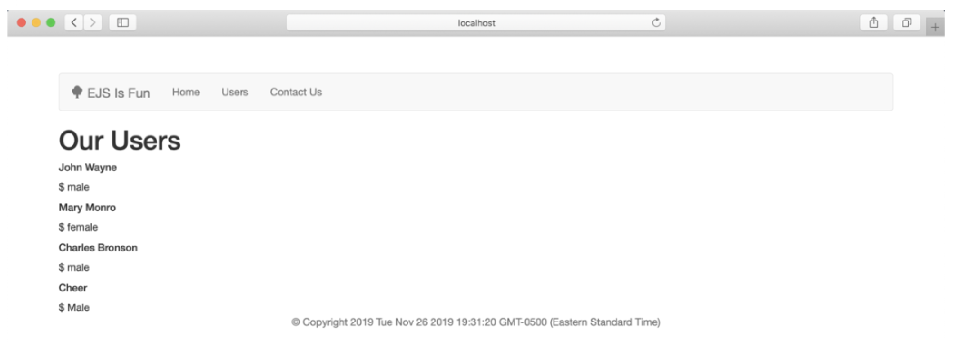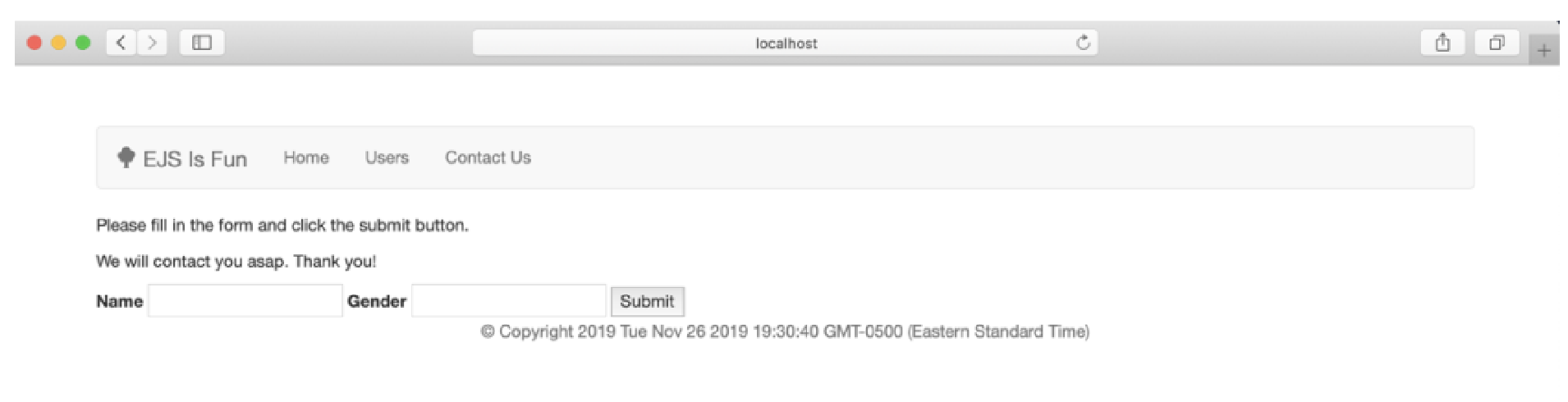 In the second part of the project, you will allow a user to enter the name and the gender via a form. Then, the newly entered name and gender will be added to the database. If you click the Users tab, you should see the new user. If you restart the browser, the newly added user may not be lost. You will be able to access the database and list all users, if needed. You need to show the form page, the before, and the after page. On the after page, you will see an added user.