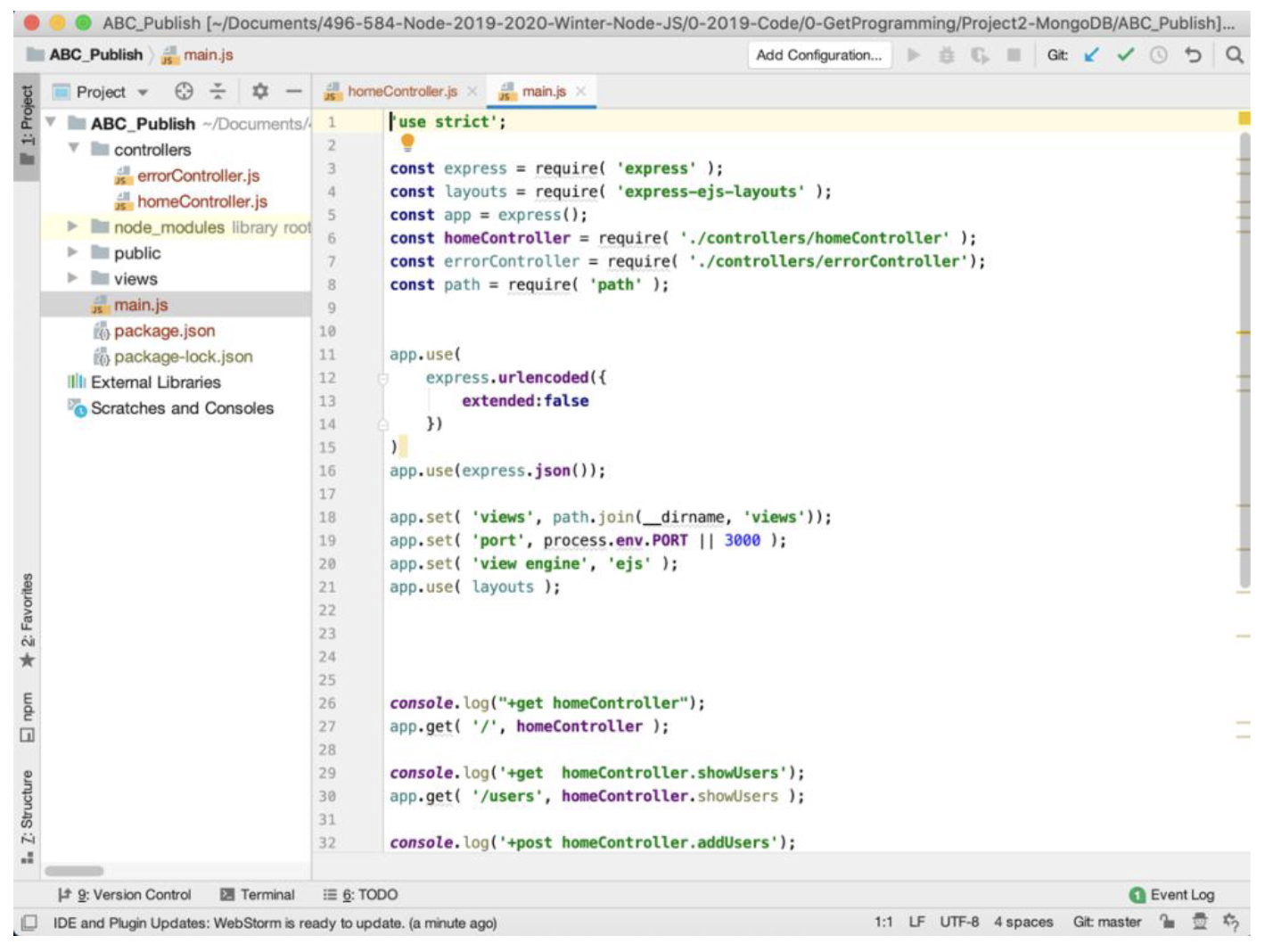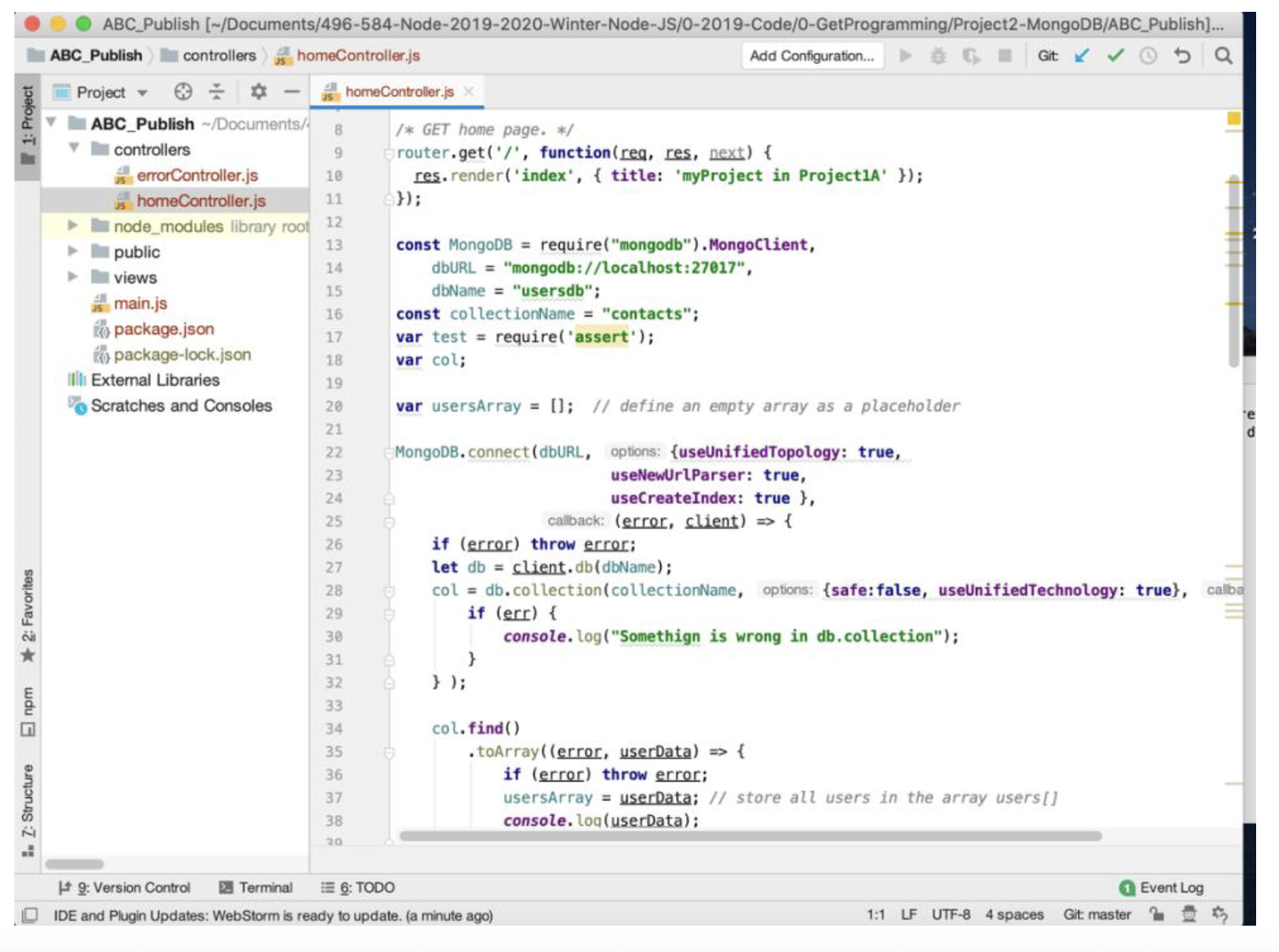 We can tell that the Routing of /users and the actual code for accessing the MongoDB database. You also need to submit the compressed files including main.js, the homecontroller.js files.
