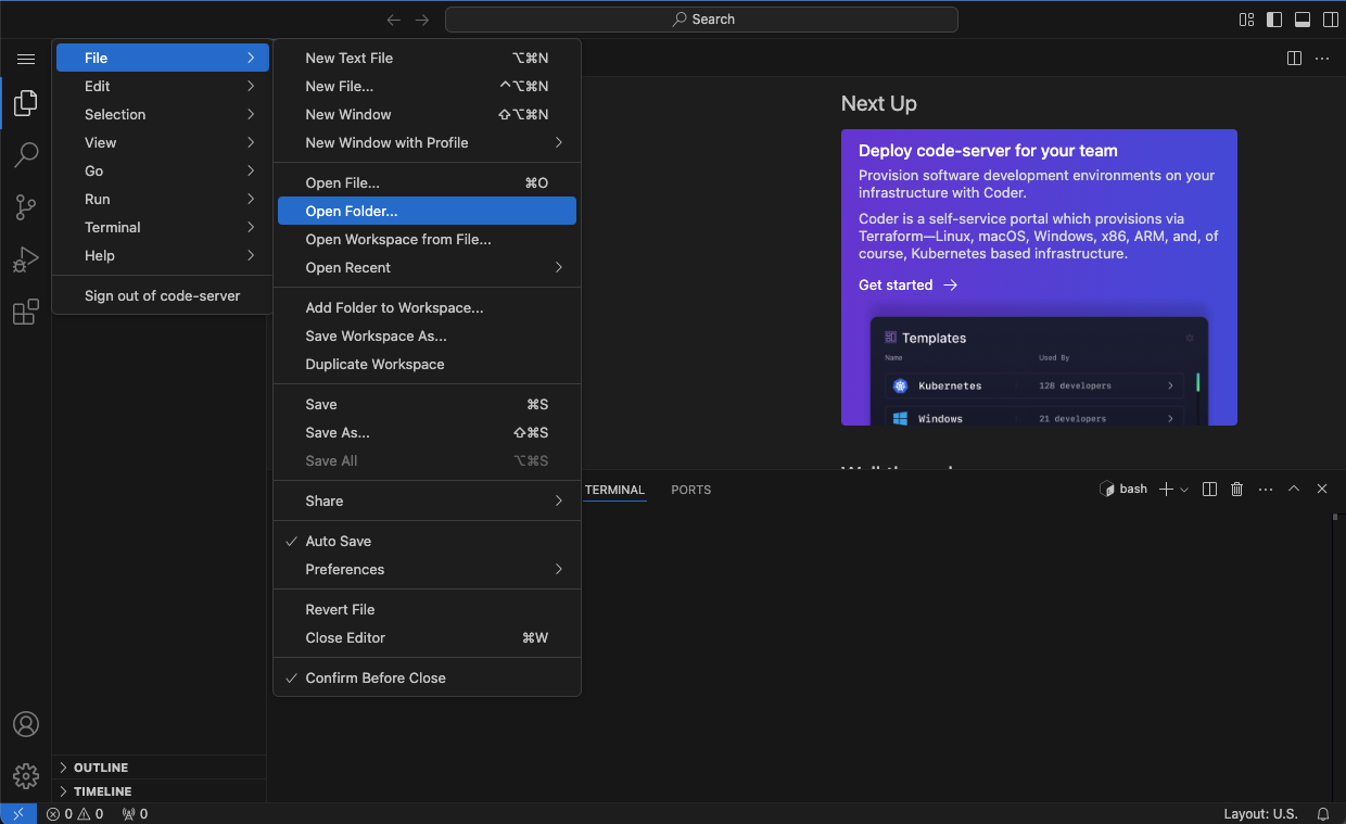 Click on the top-left three dashes, select File then Open Folder