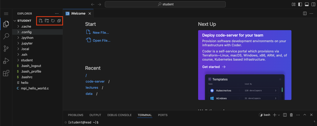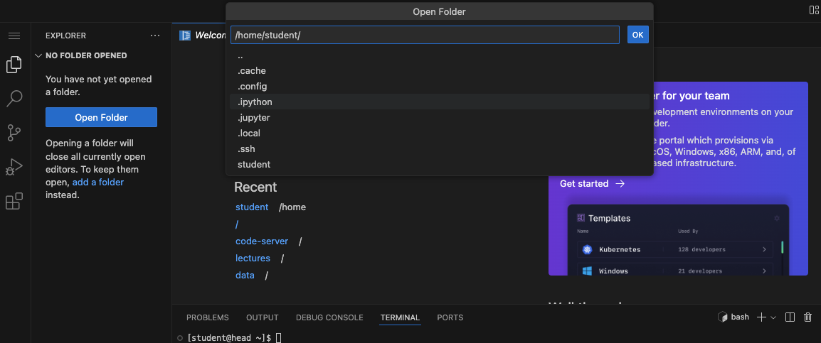 /home/student in the box then press OK