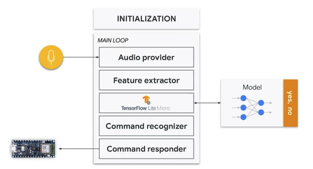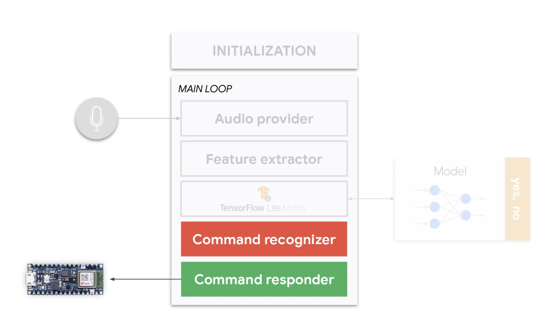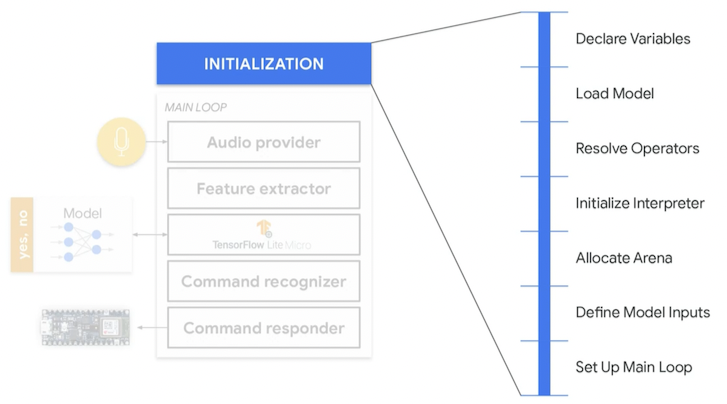 micro_speech.ino namespacemicro_features_model.cpp micro_speech.ino setup()model variablemicro_speech.ino setup()AddOPERATOR with OPERATOR is the name of the operator to be added.micro_speech.ino setup()micro_speech.ino setup()micro_speech.ino setup()model_input->dims->size kws-training-... notebook.model_input is the FLATTENED_SPECTROGRAM_SHAPE FEATURE_BIN_COUNT = 40: 40OVERLAPPING_WINDOWS = window_counter(CLIP_DURATION_MS, int(WINDOW_SIZE_MS), WINDOW_STRIDE): 49micro_features_micro_model_settings.h constexpr int kFeatureSliceSize = 40;constexpr int kFeatureSliceCount = 49;FEATURE_BIN_COUNT: kFeatureSliceSizeOVERLAPPING_WINDOWS: kFeatureSliceCountmicro_speech.ino setup()static_feature_provider static_recognizer micro_speech.ino void loop()
