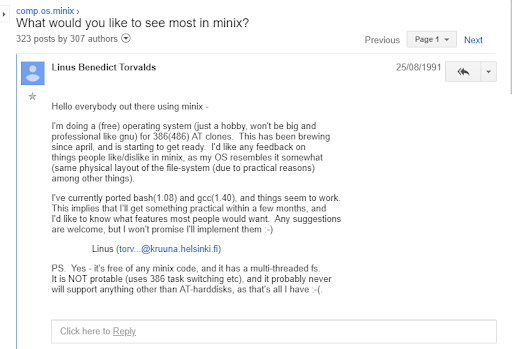 1992: Linus Torvalds, an undergraduate at University of Helsinki, Finland, developed his own OS called Linux, with inspirations from both UNIX and MINIX.