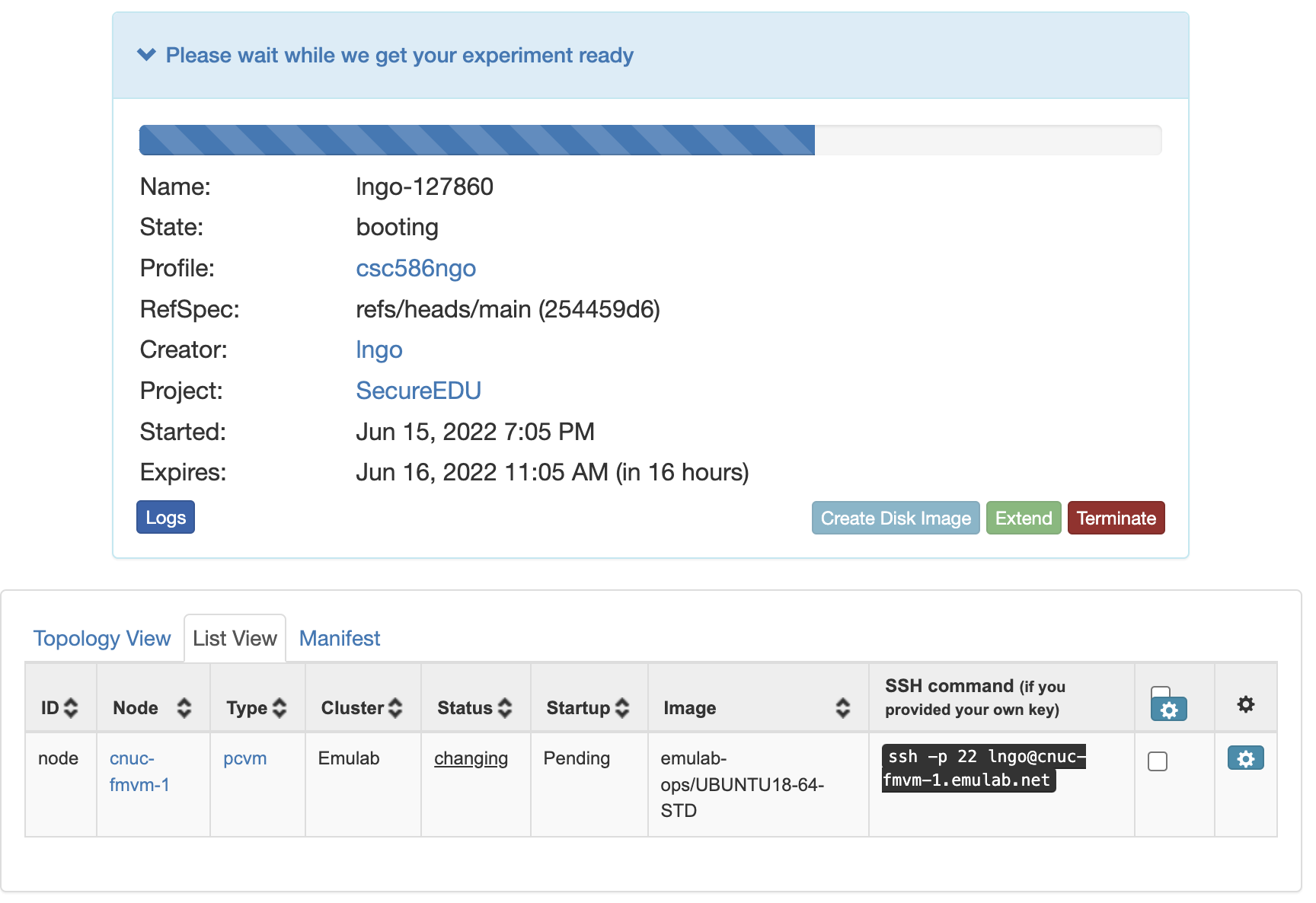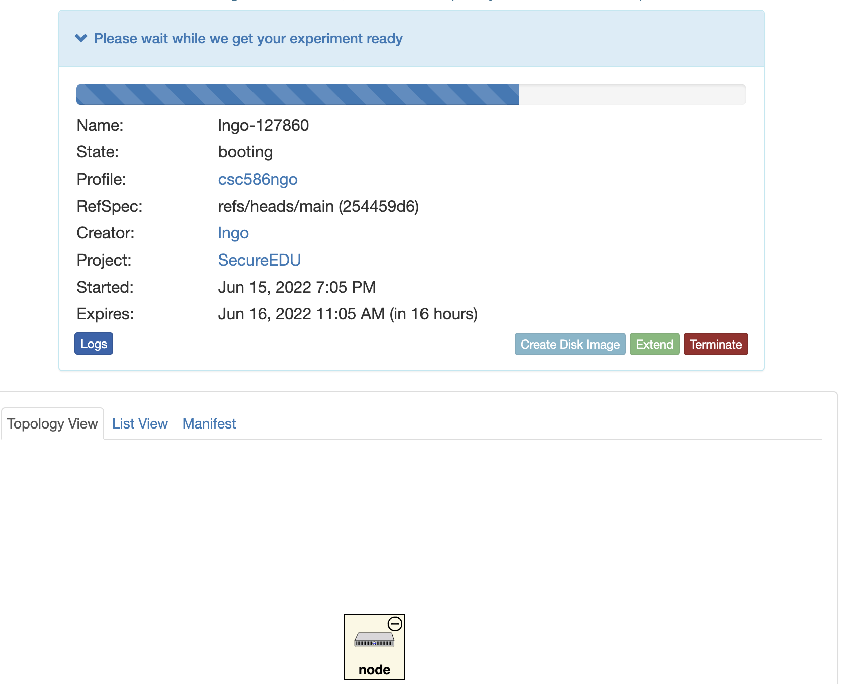 :alt: Instantiate an experiment from the profile
