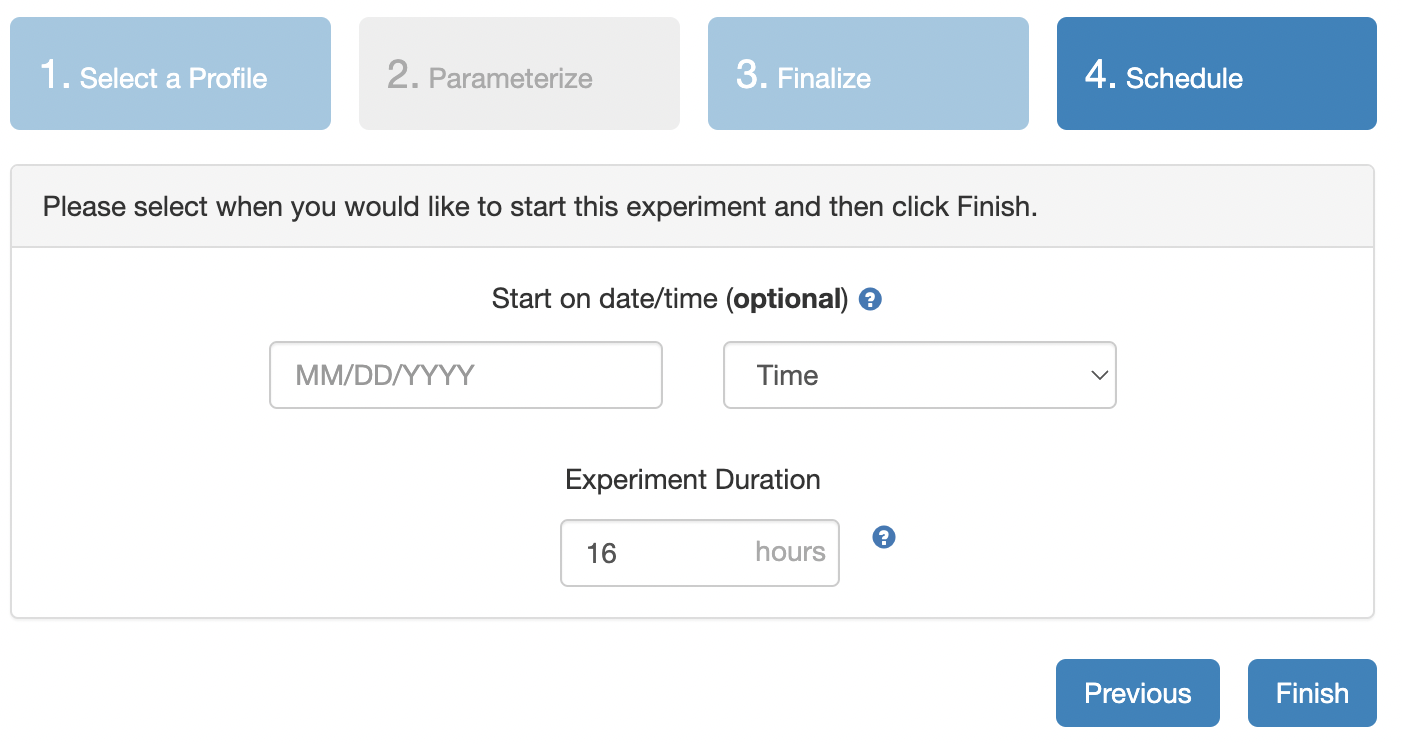 Instantiate to launch an experiment from your profile.
